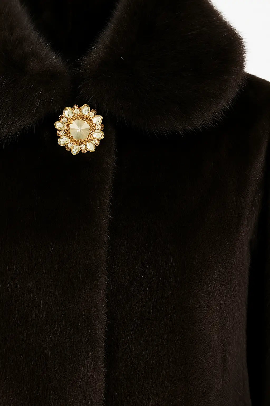 Pelliccia con bottone gioiello